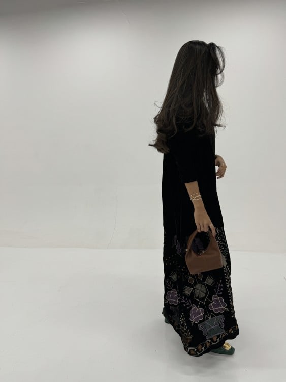 مخمل اسود مطرز طرف ، طرحه اسود ساده