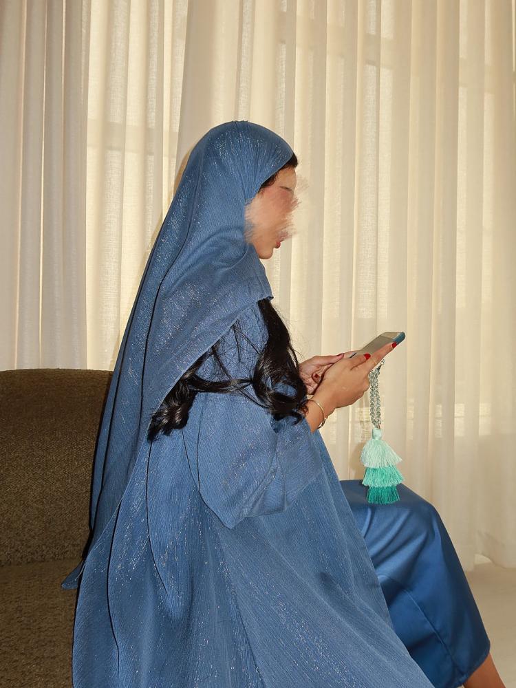 عبايـة قماش شيفون لمعه ، مبطنه شيفون اندونيسي ، طرحه بنفس خامة العباية ، القصة كلوش