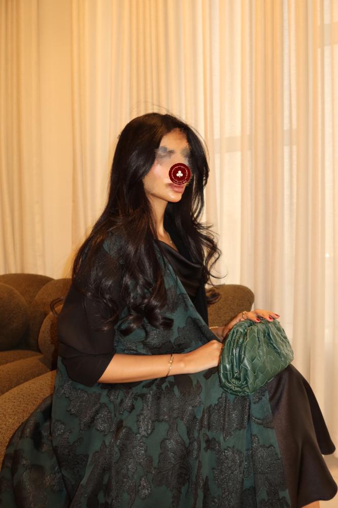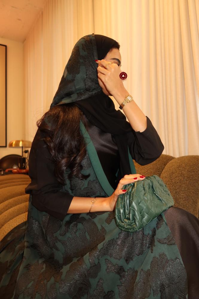عبايـة شيفون تركي مرسم خفيف ، مبطن شيفون اخضر ساده، اكمام حرير ياباني ، طرحه بطرف عريض شيفون تركي