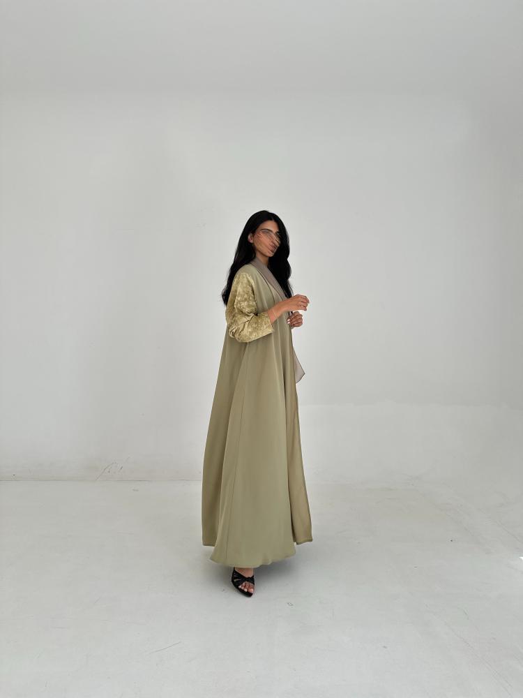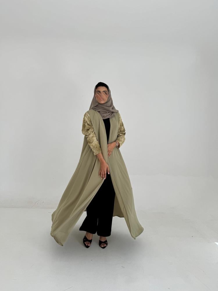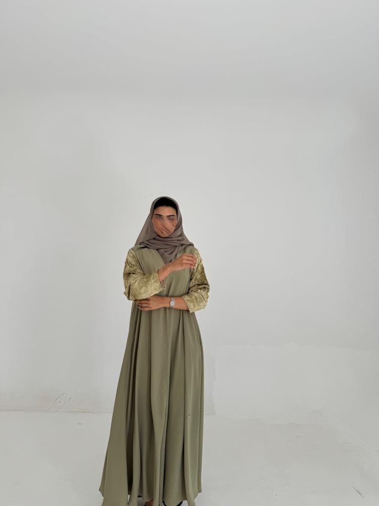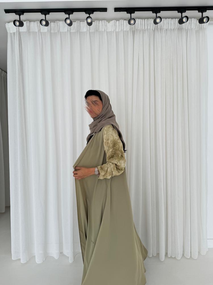 عبايه كريب خفيف ، اكمام شك جاكار مبطن بشيفون ، طرحه ساده ، القصه كلوش …ملاحظه : لون الطرحه مقارب للعبايه الاختلاف فقط بالاضاءه ..
