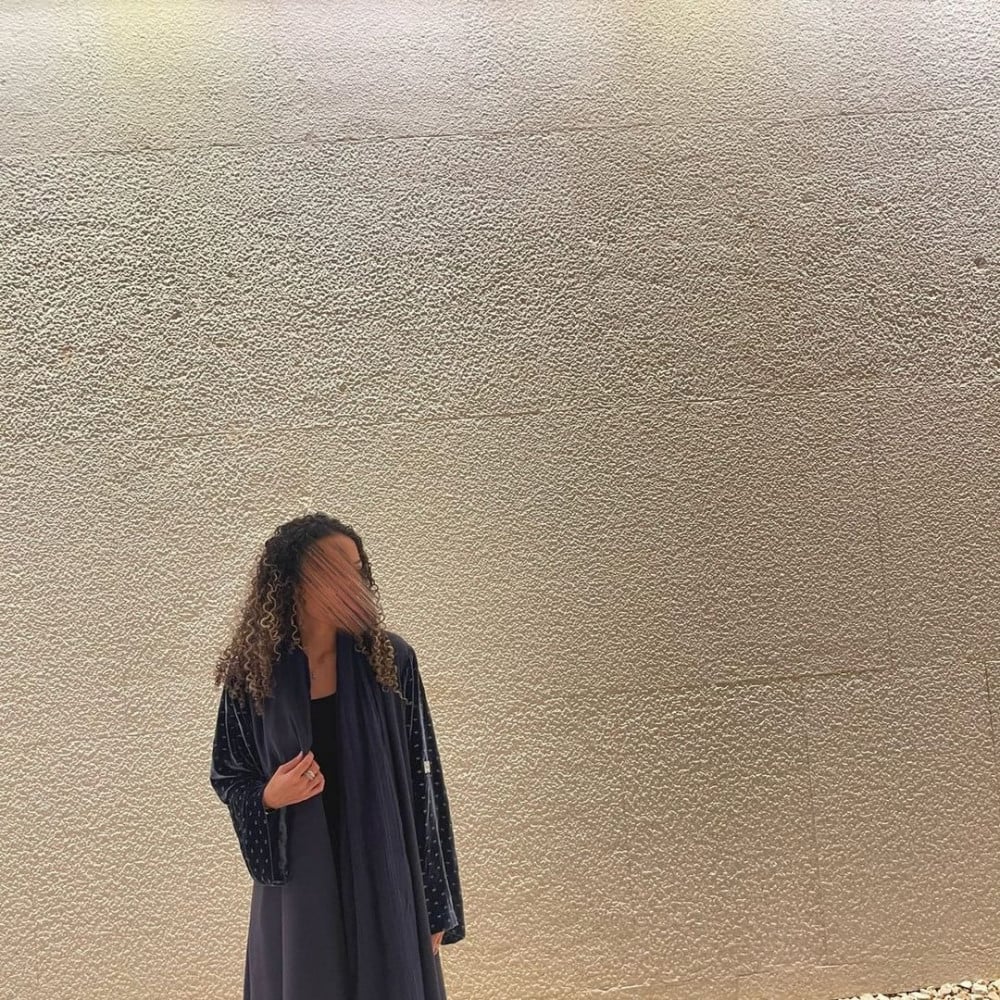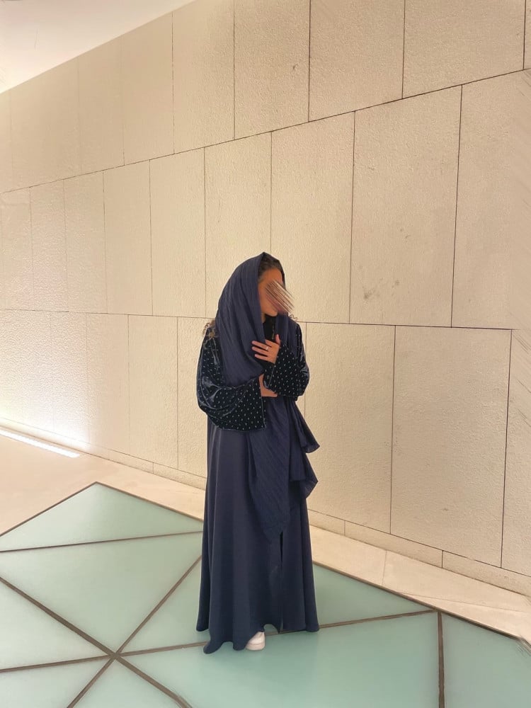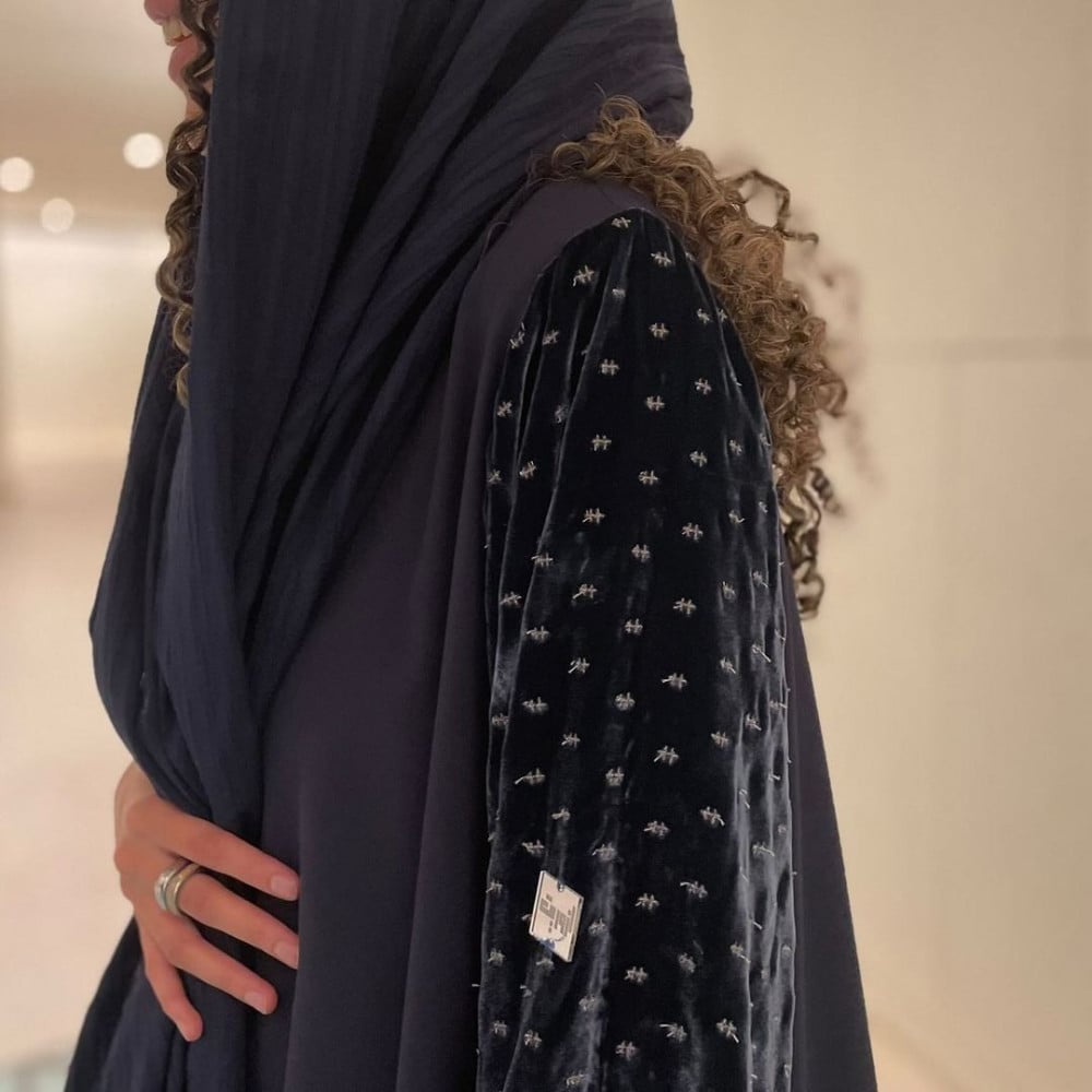 كريب كحلي واكمام مخمل فرنسي فاخر طرحه لينن مخطط والقصه كلوش