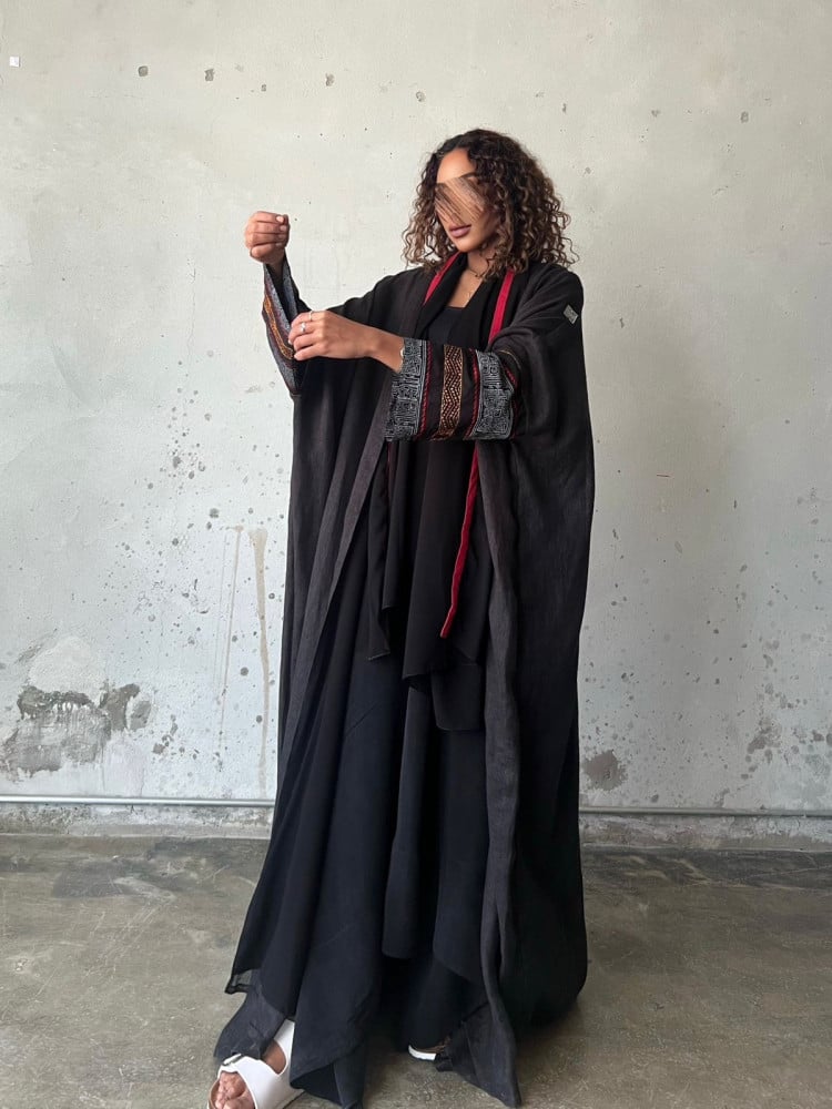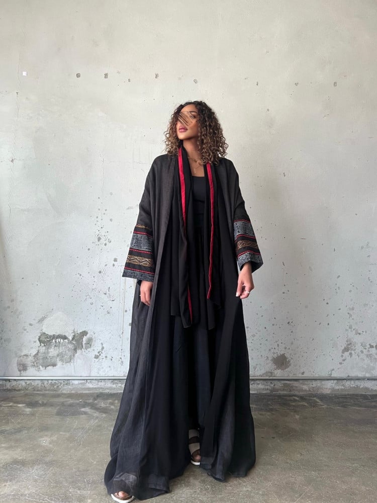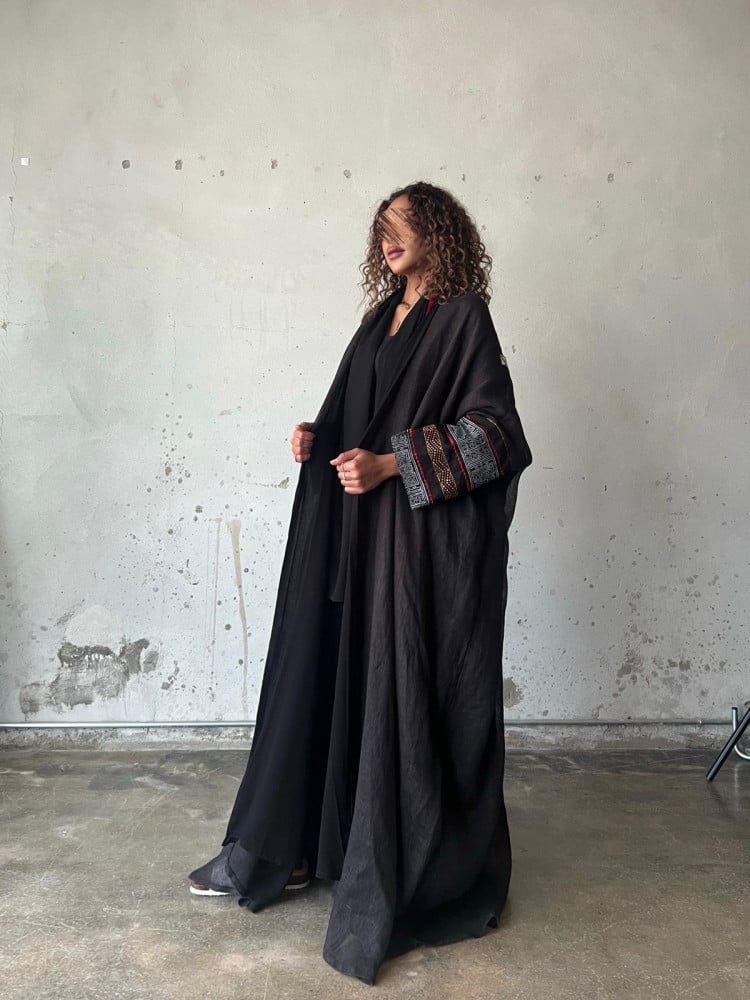 لينن هندي مبطن بشيفون مع اكمام لينن مرسم