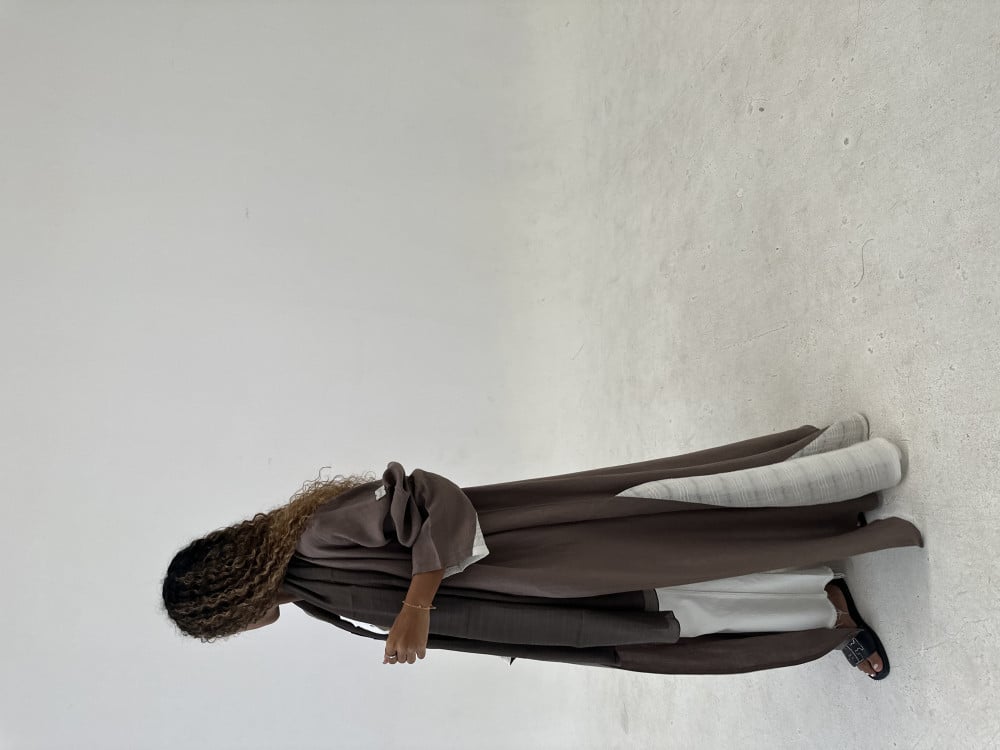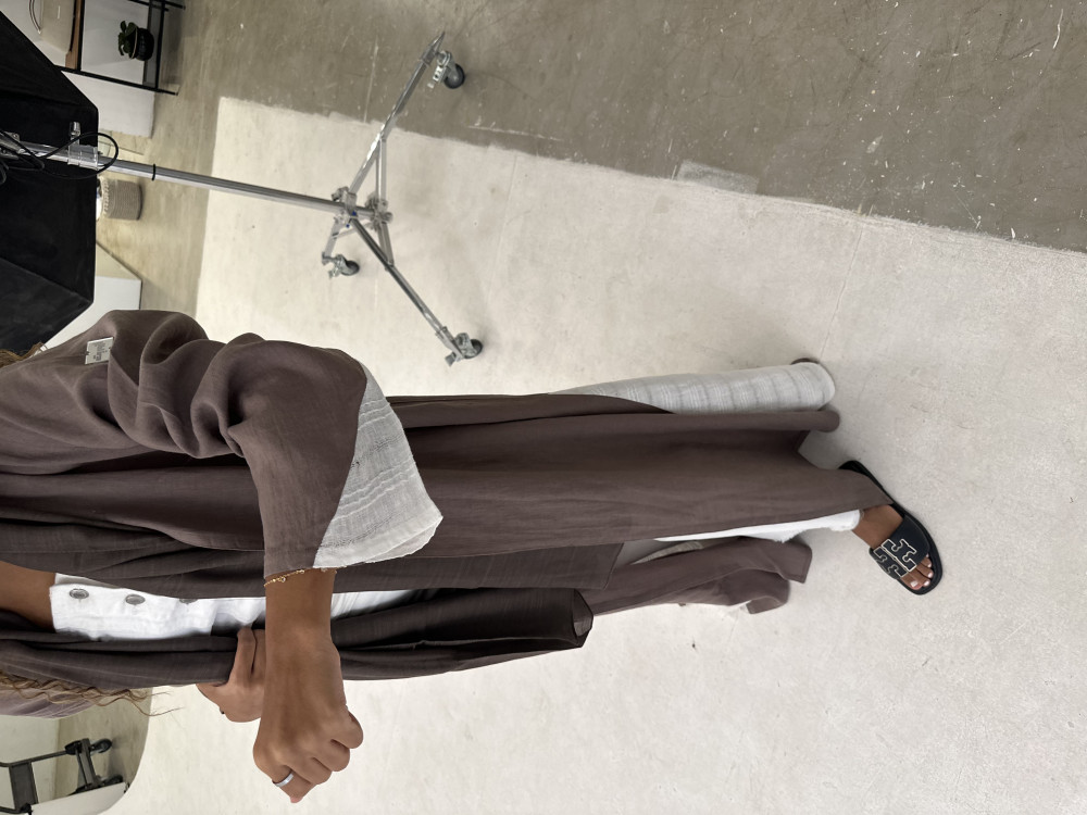 التفاصيـل :قماش لينن طبيعي 100% بني ، لينن طبيعي خفيف ابيض
