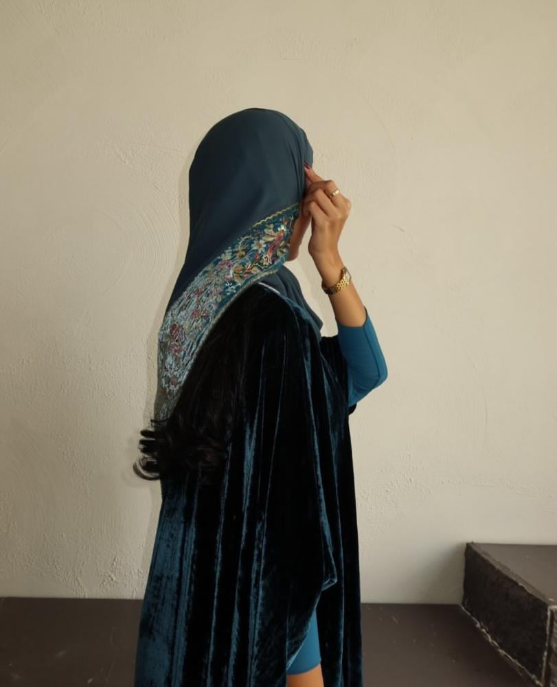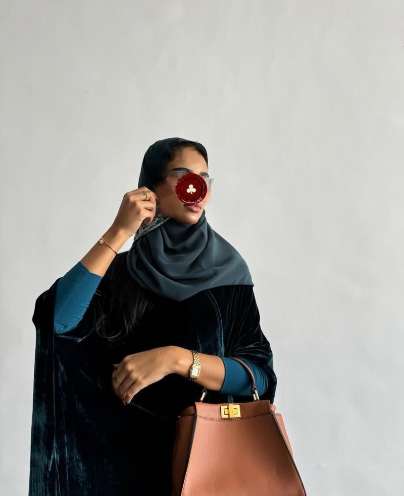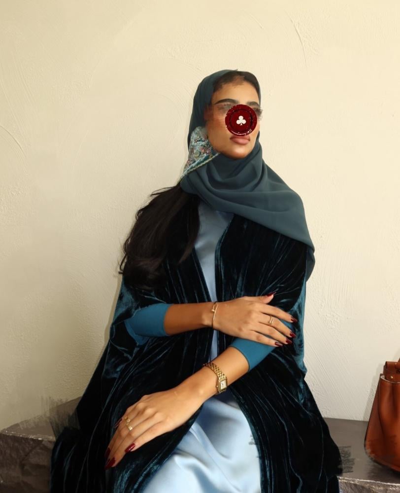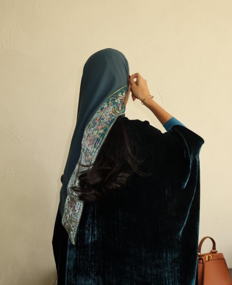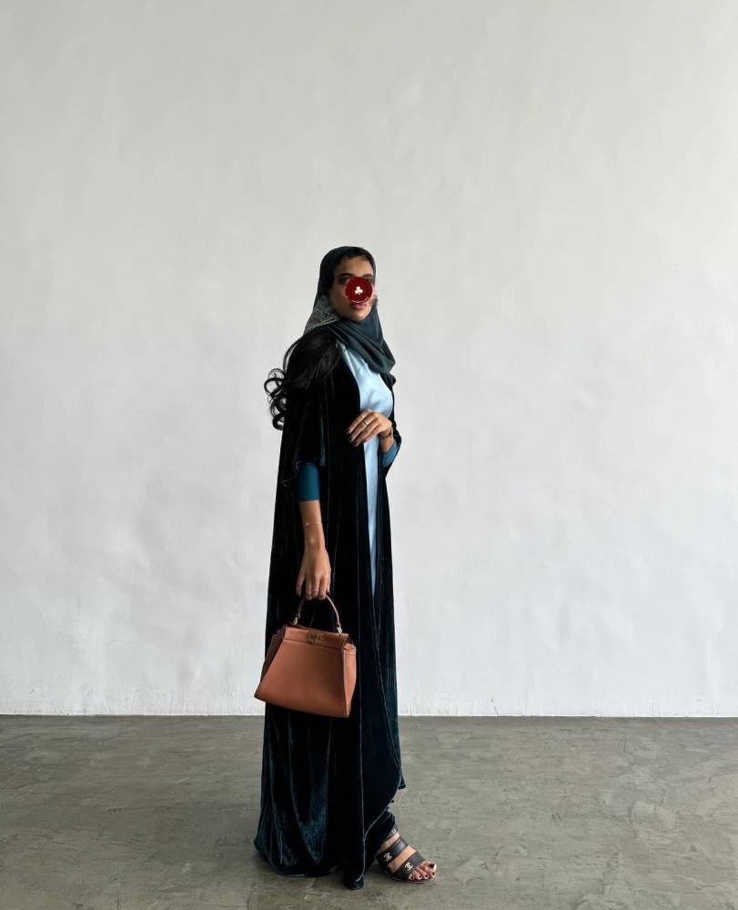 عباية قماش مخمل حرير ، اكمام استرتش ، قصة بشت ، طرحه طرف مطرز مخمل فرنسي .
