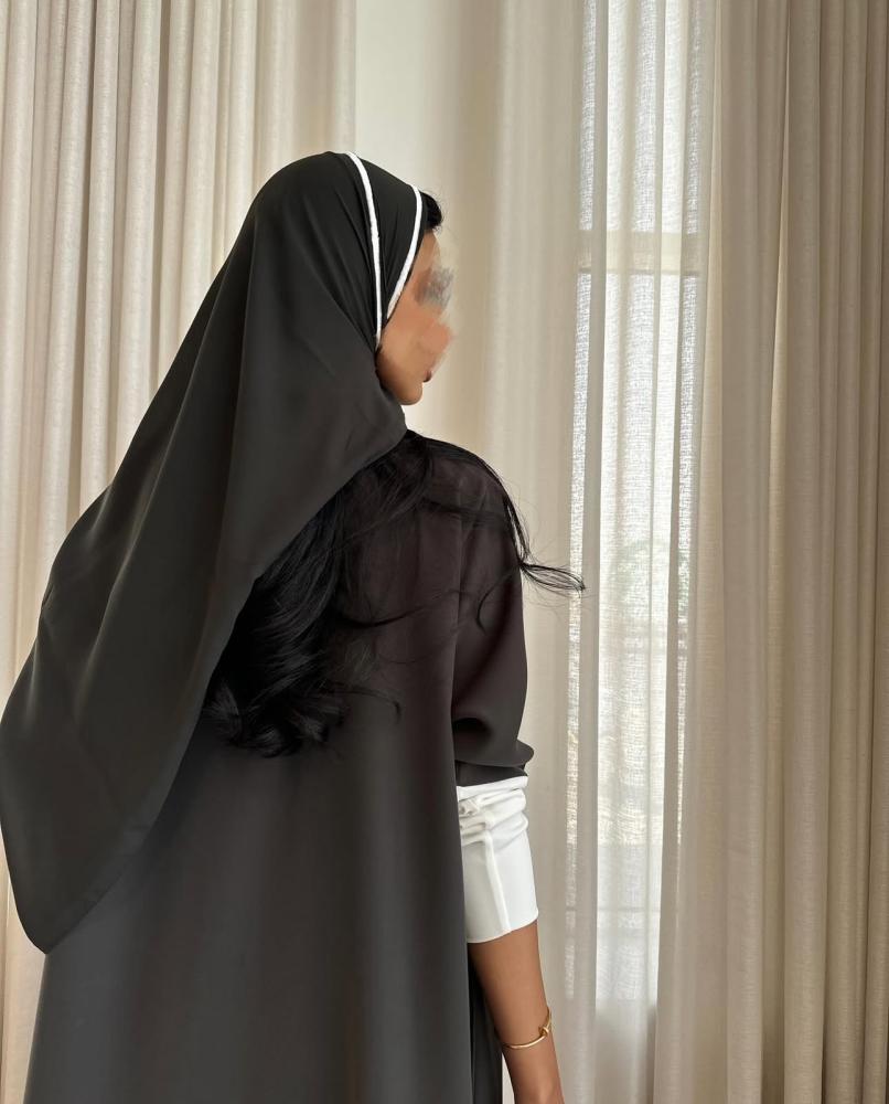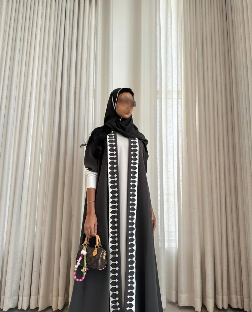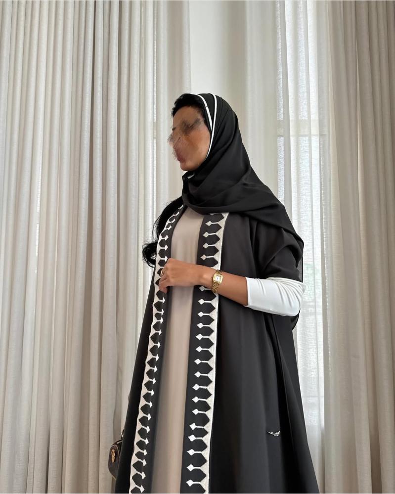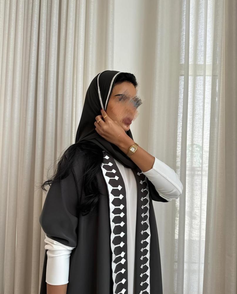 عبايـة قماش كريب ، تطريز يدوي من الامام ، اكمام استرتش ، طرحه تطريز طرف ، القصة كلوش