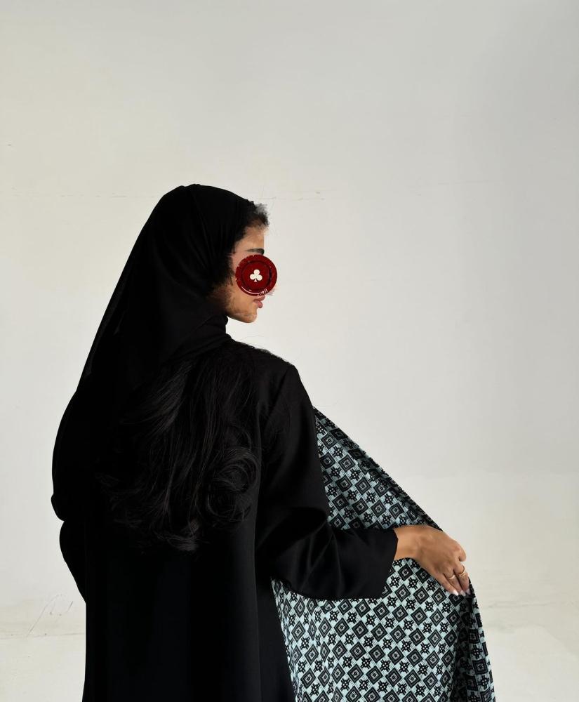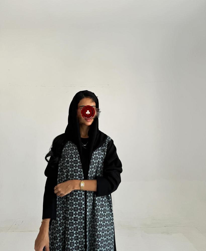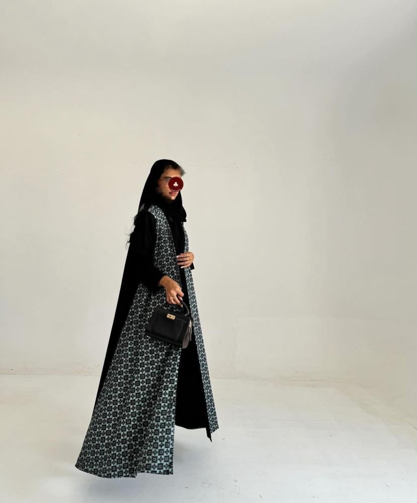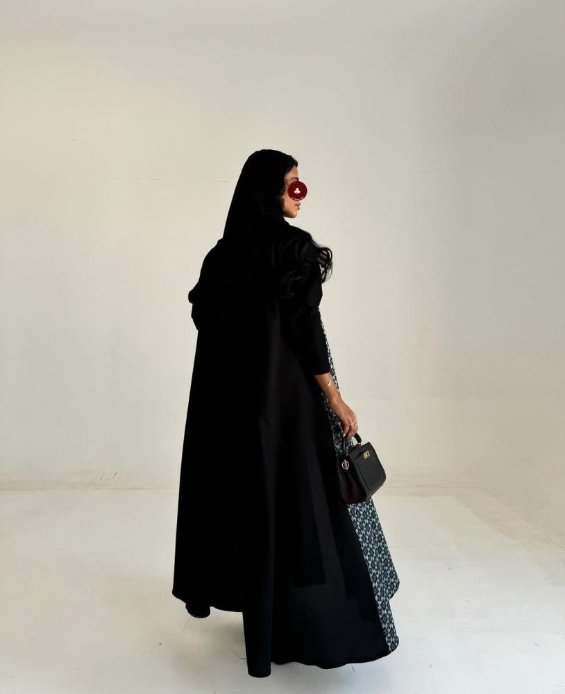 عبايه كتان اسود ، قطن هندي مشجر من الامام ، طرحه ساده ، القصه كلوش ..