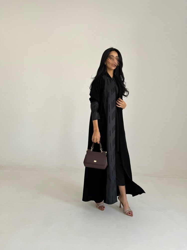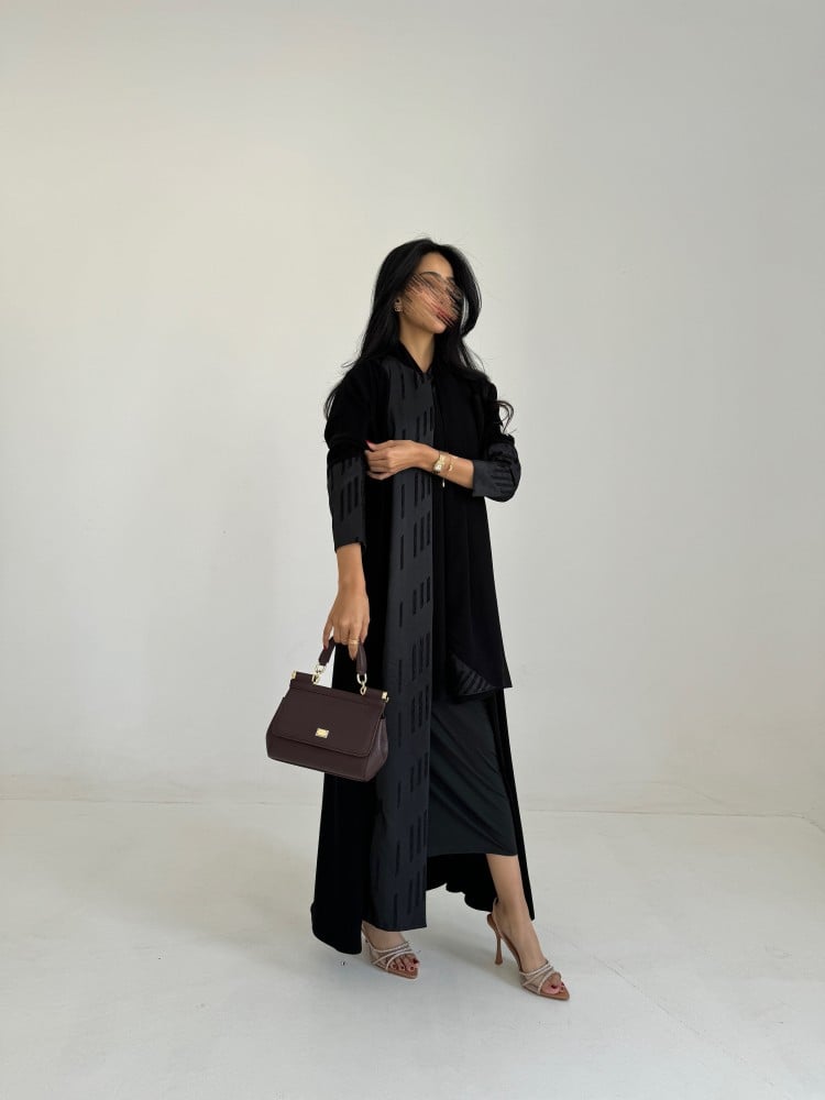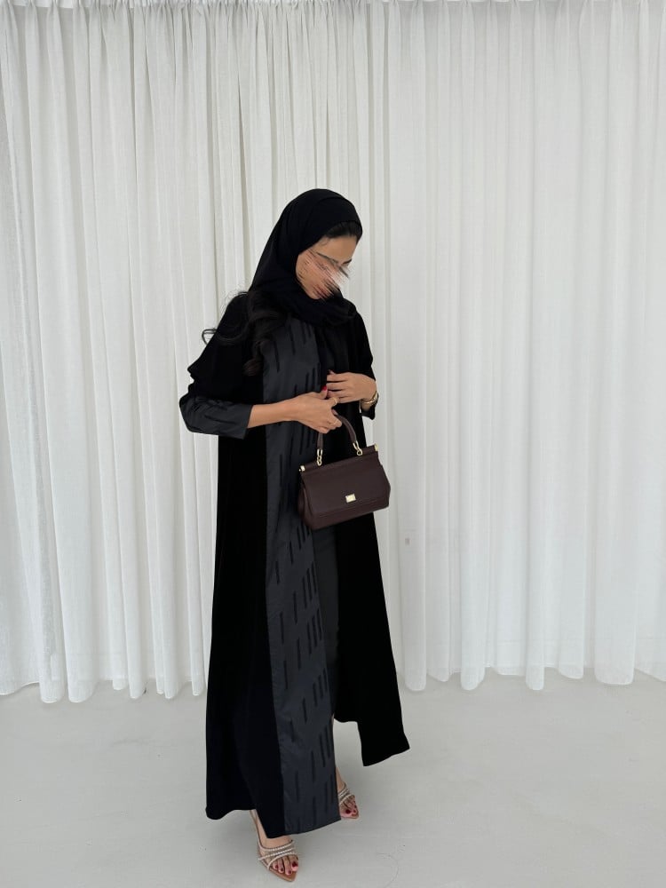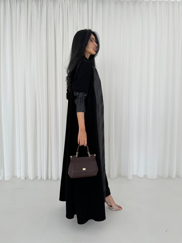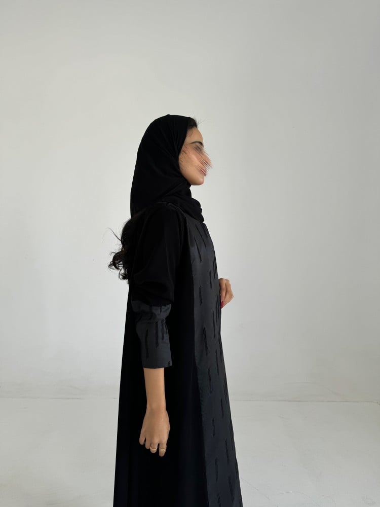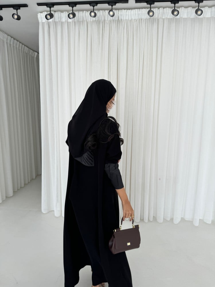 عباية قماش كريب اسود سواد فاحم خاص فينا ، قماش تفته مطرز ، قصه عاديه ، طرحه اسود طرف مثلث ..