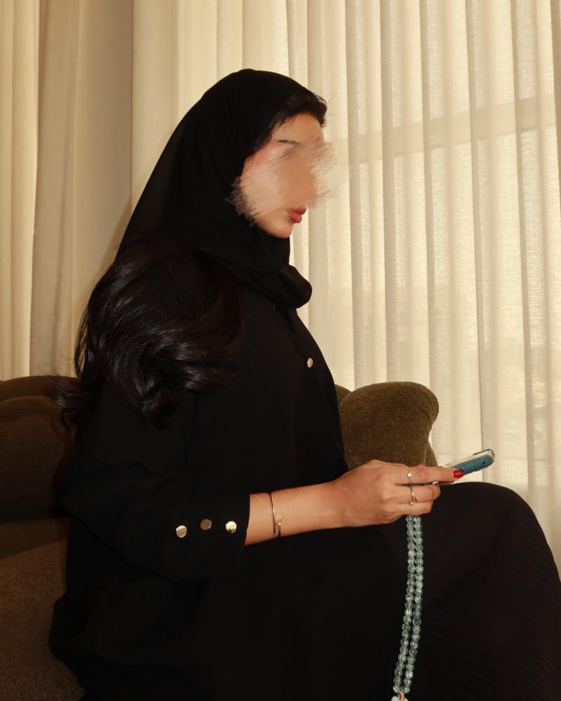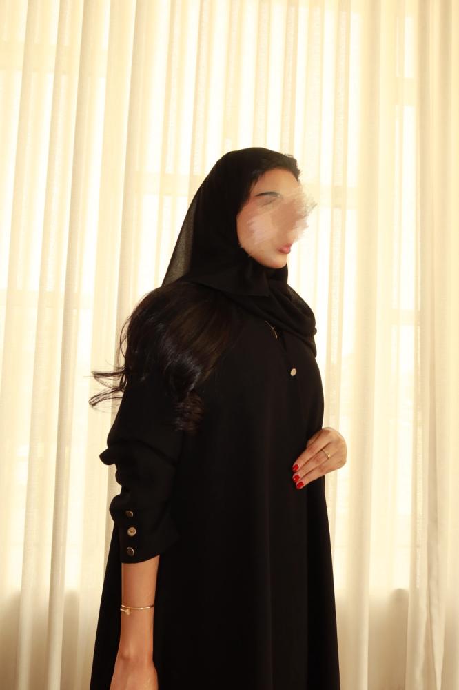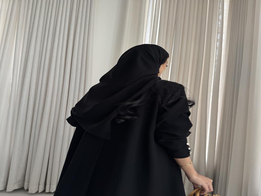 عبايـة قماش اسود سواد فاحم ، ازرار فضي ، كسره من الخلف ، القصة كلوش