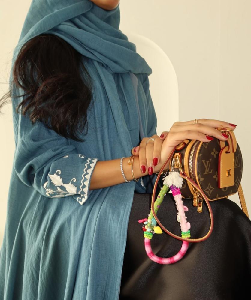 قصة كلوش , طرحه لينن تطريز نفس العبايه .