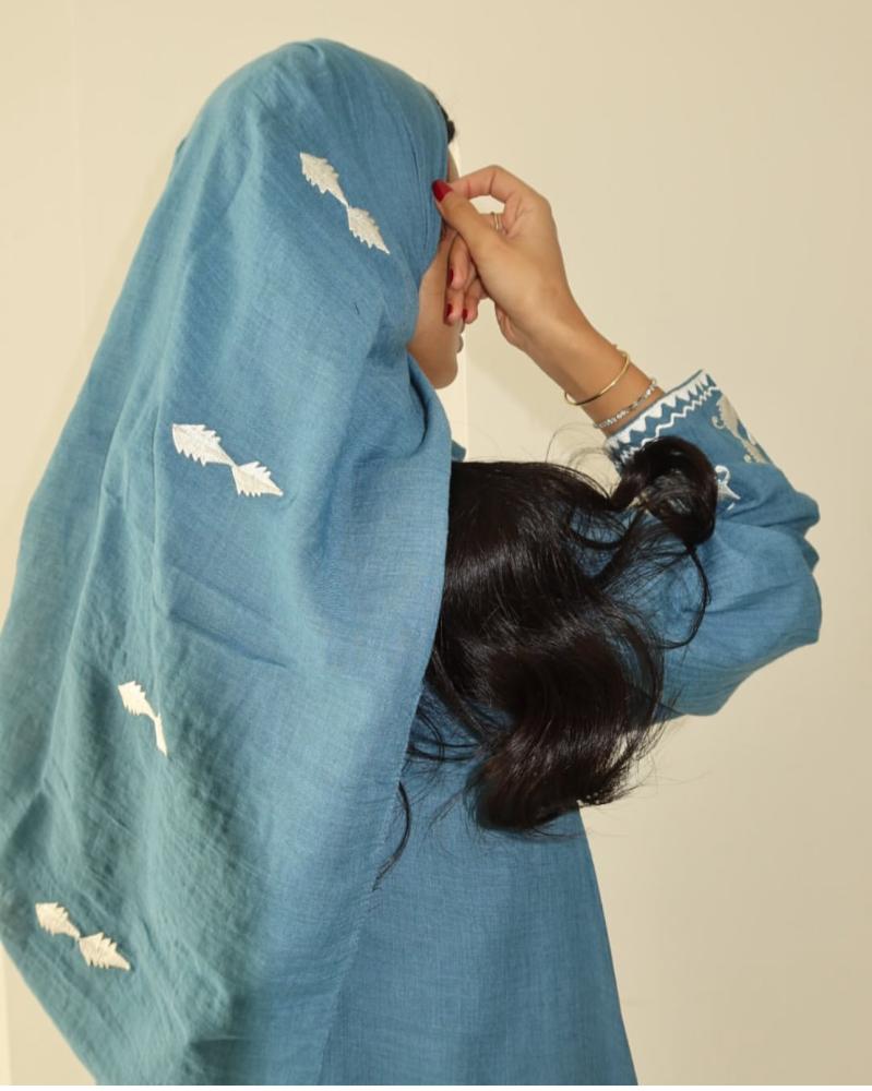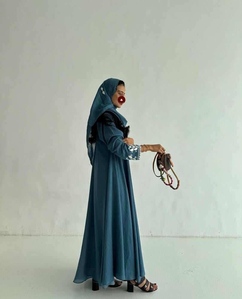 عباية قماش لينن هندي خفيف مطرز تطريز خاص لـ ازوريت عبايـه ، مبطن شيفون اندونيسي ،