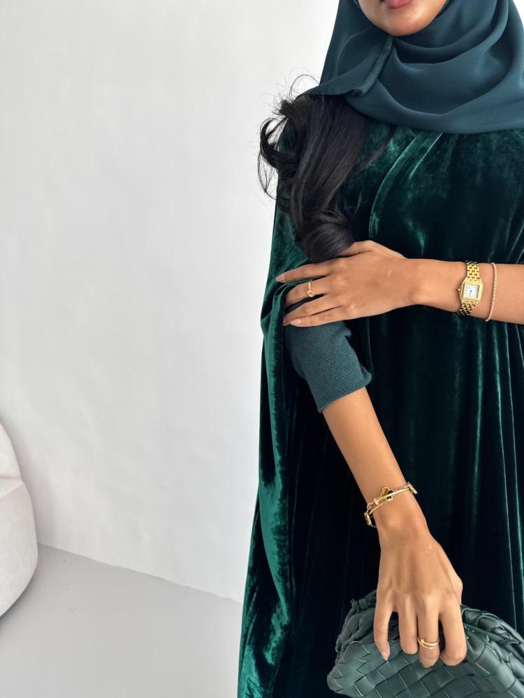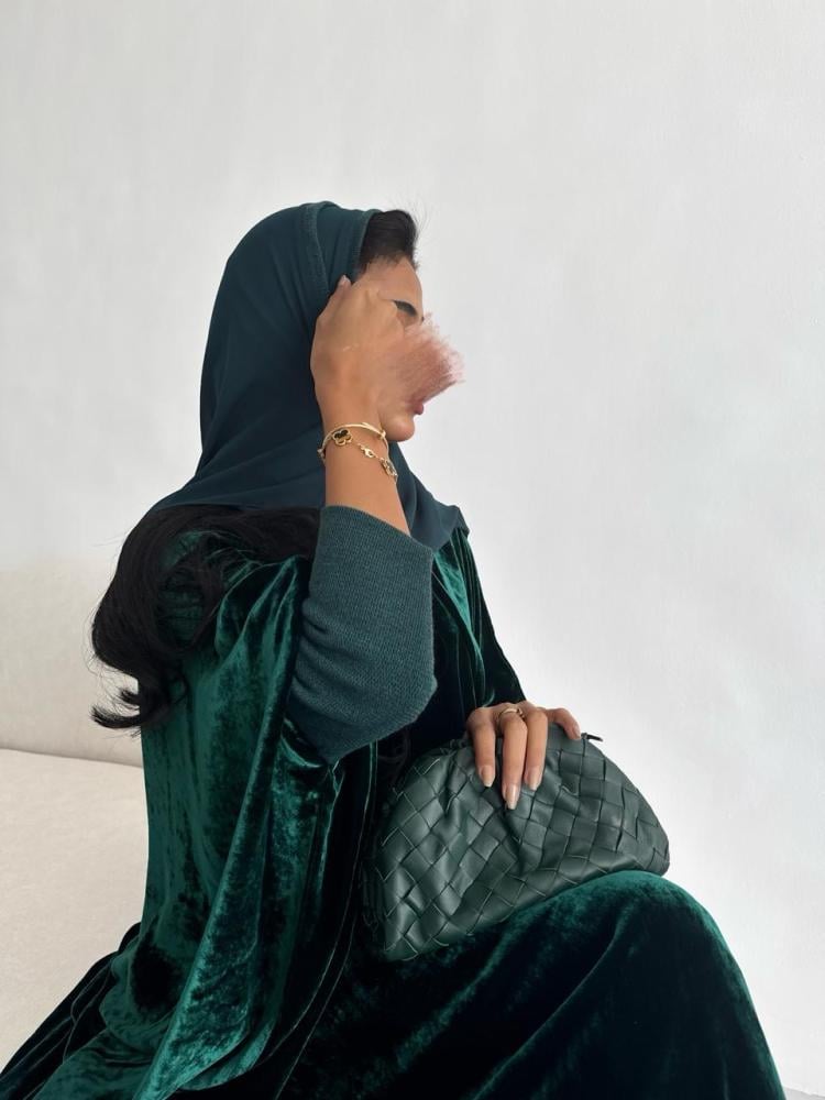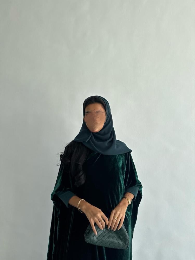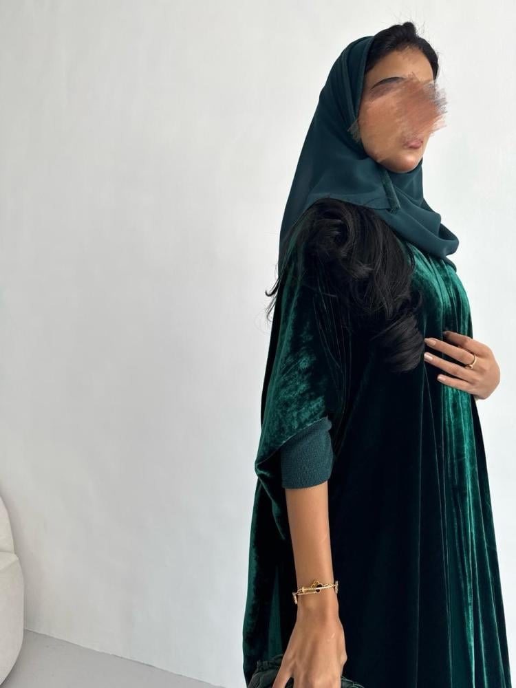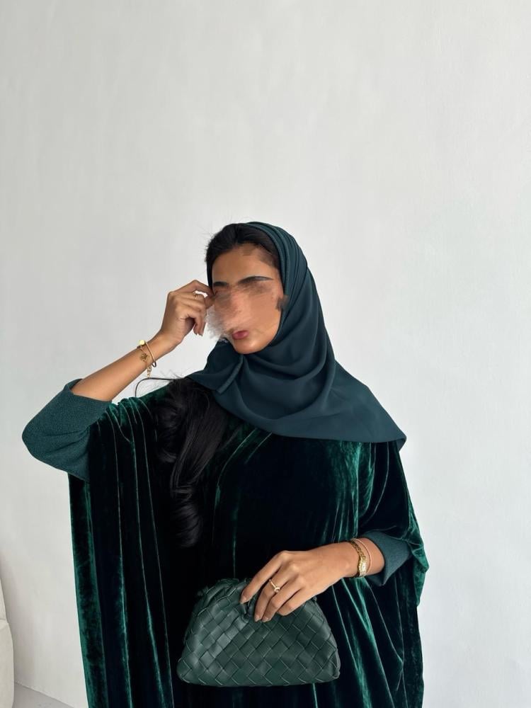 عباية قماش مخمل حرير فرنسي ، اكمام صوف تركي ، القصة بشت ، طرحه طرف صوف