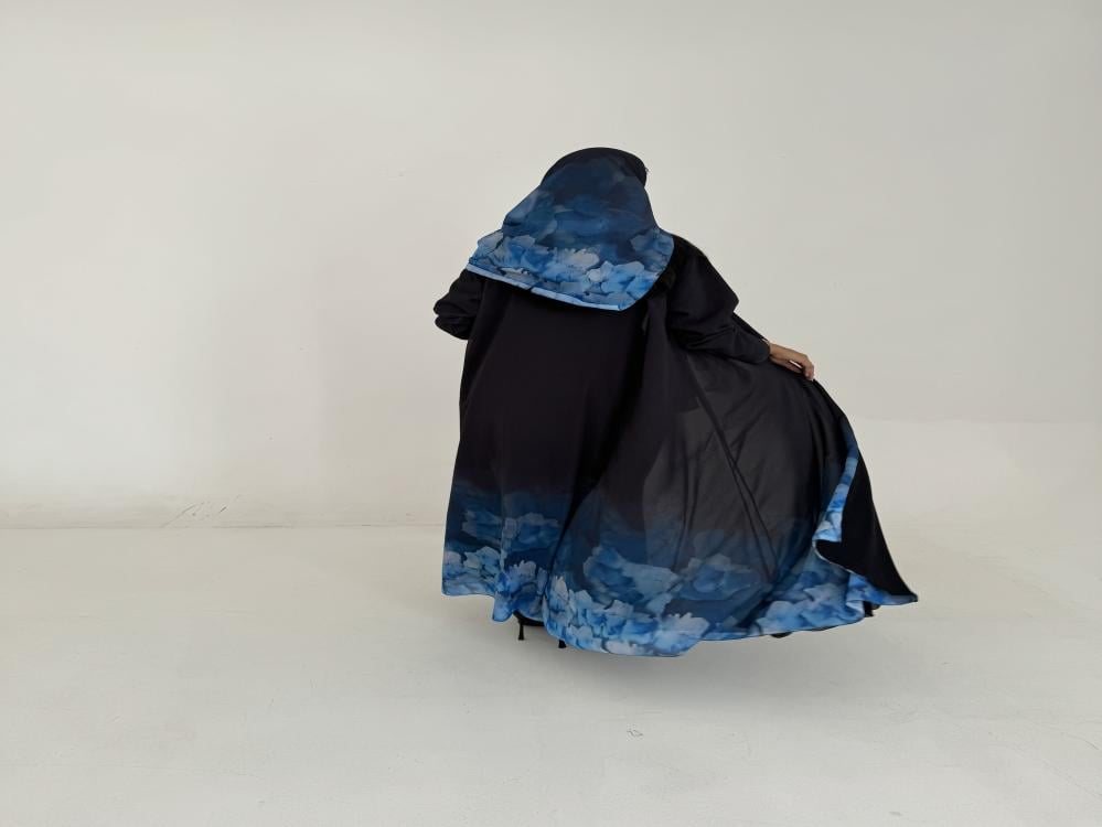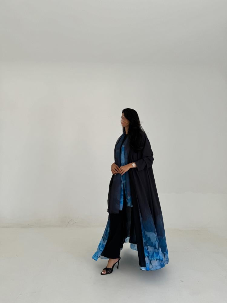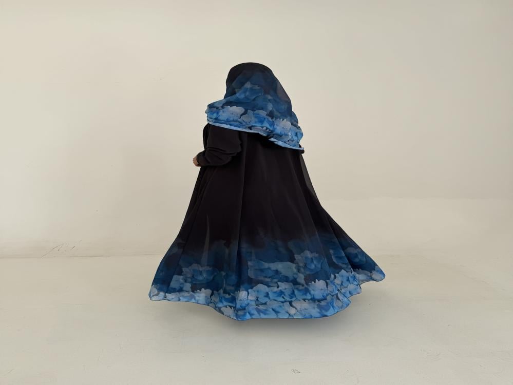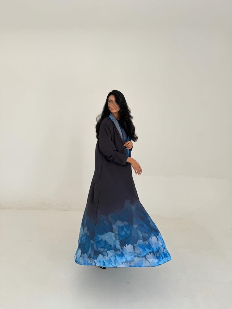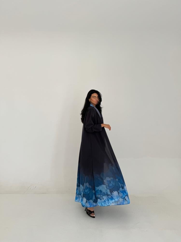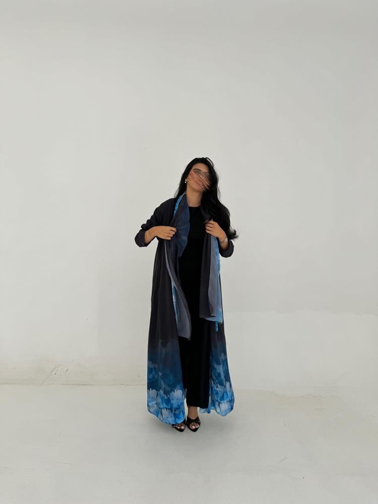 #٨١ عبايه شيفون مموج طرف ، مبطنه بشيفون اسود ، طرحه مموج نفس العبايه