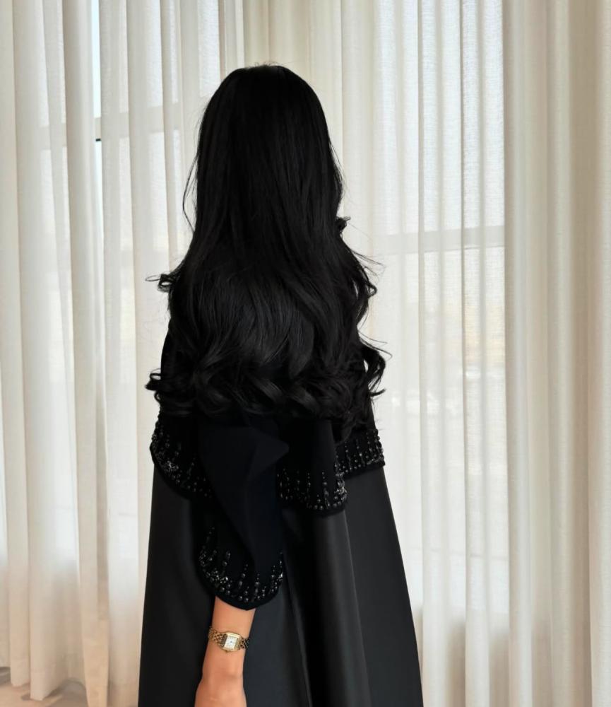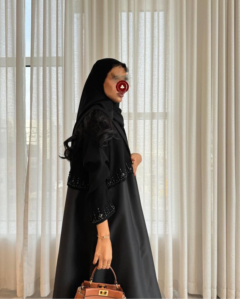 عبايـة كريب اسود سواد فاحم ، تفته ، شك يدوي ، طرحه ساده