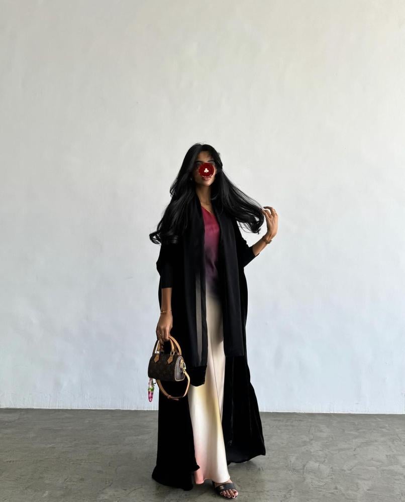 عباية قماش مخمل حرير ، اكمام استرتش ، قصة بشت ، طرحه طرف .