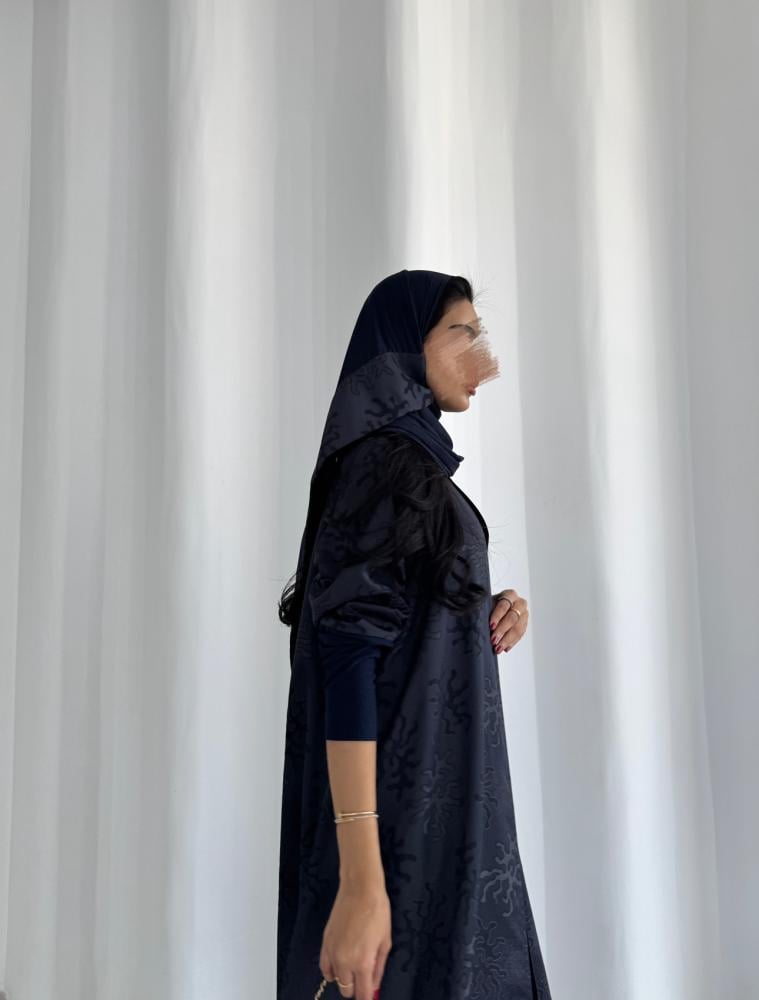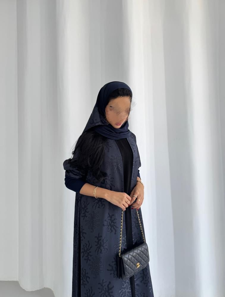 عبايـة قماش جاكار خفيف ، اكمام استرتش لمعه ، طرحه طرف ، القصة كلوش