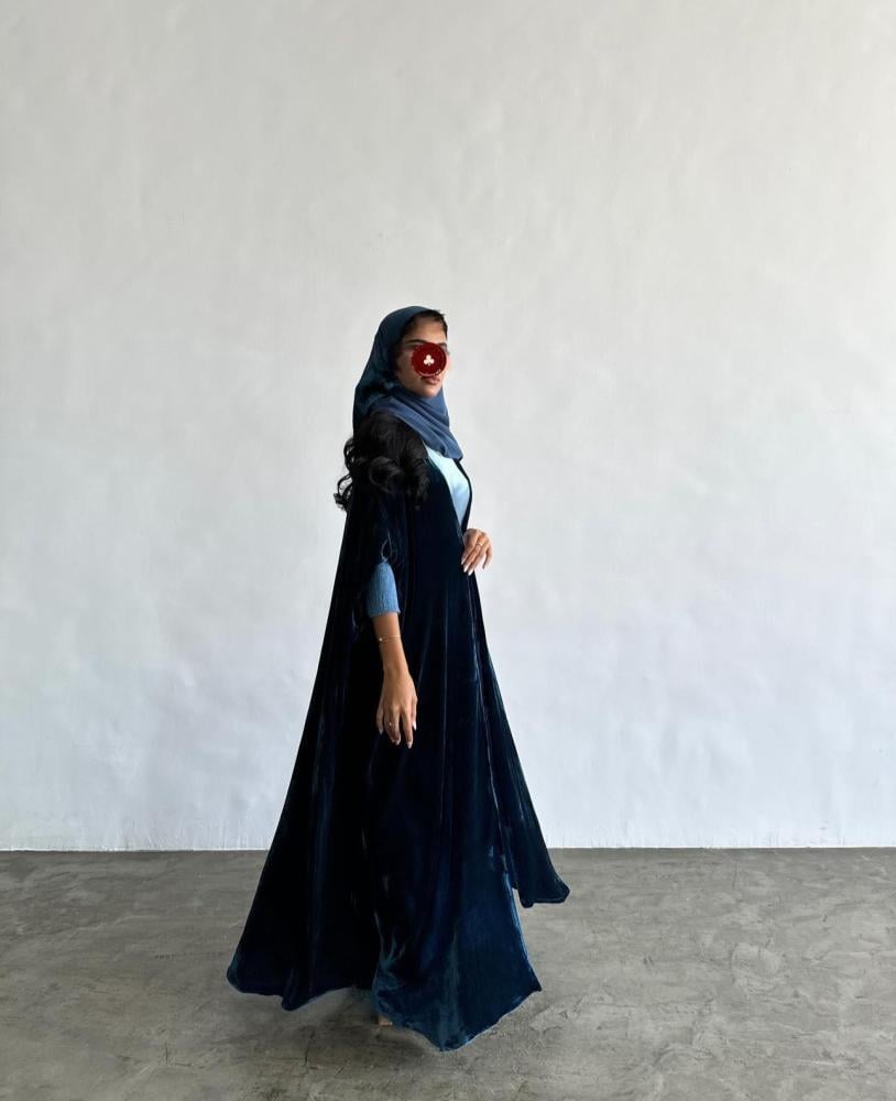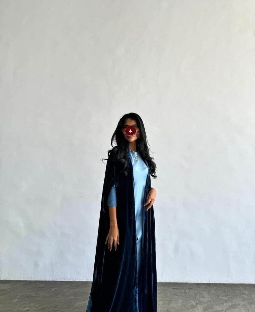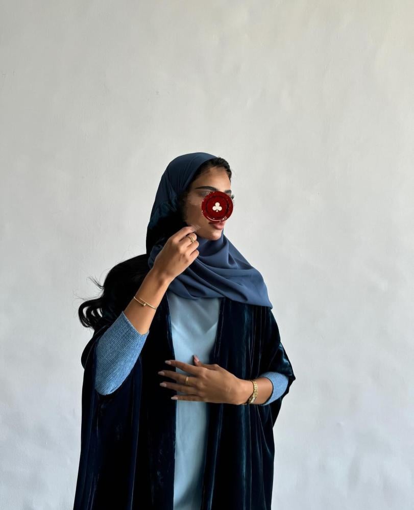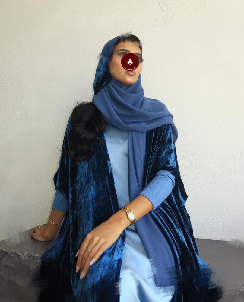 عباية قماش مخمل حرير ، اكمام استرتش ، قصة بشت ، طرحه طرف .