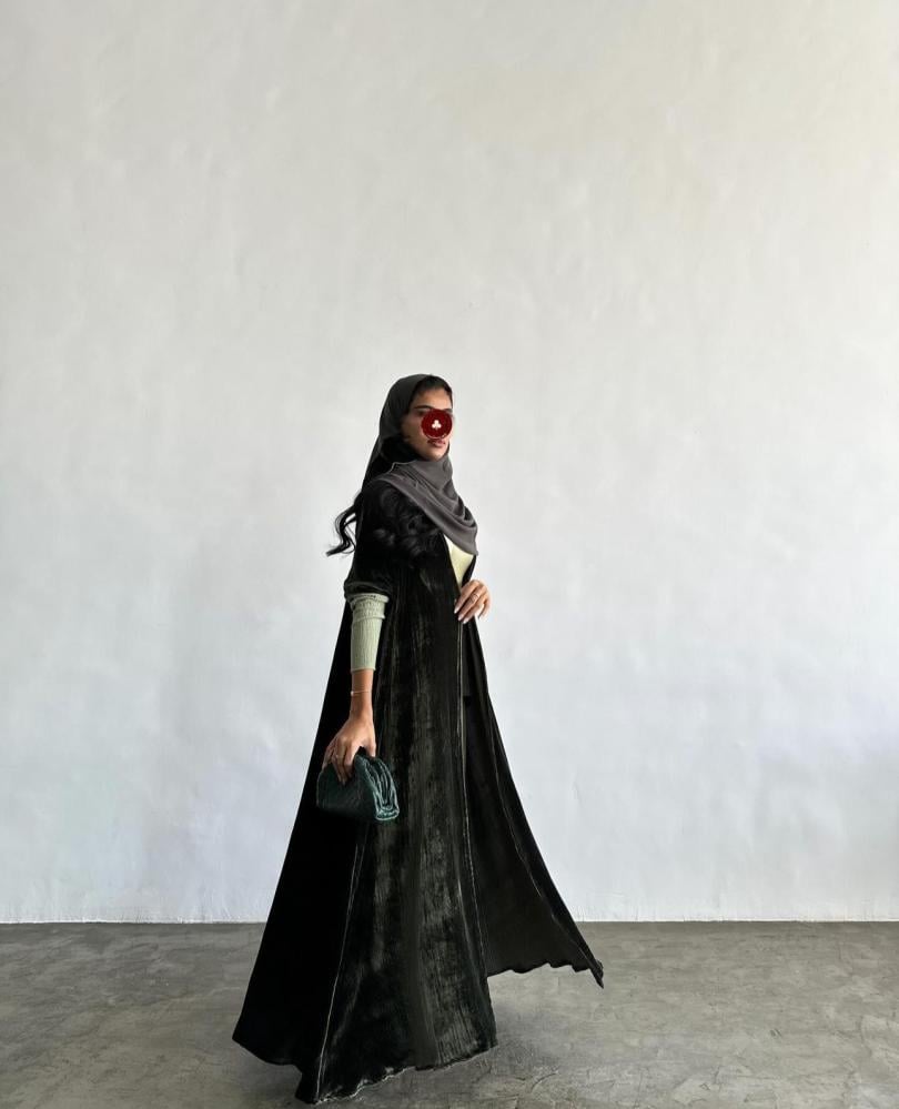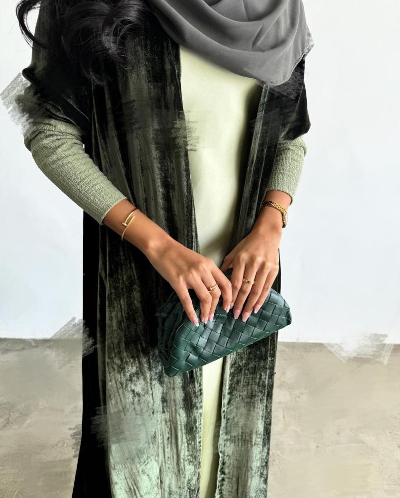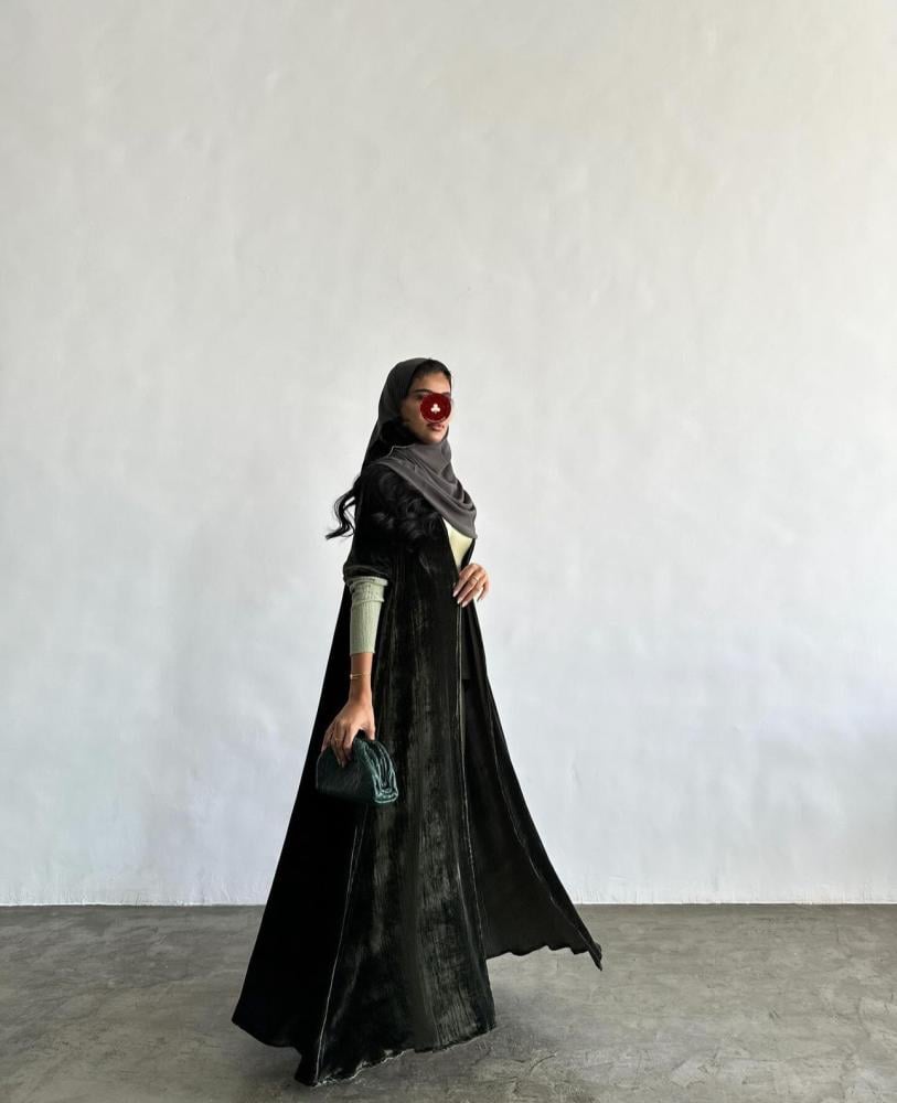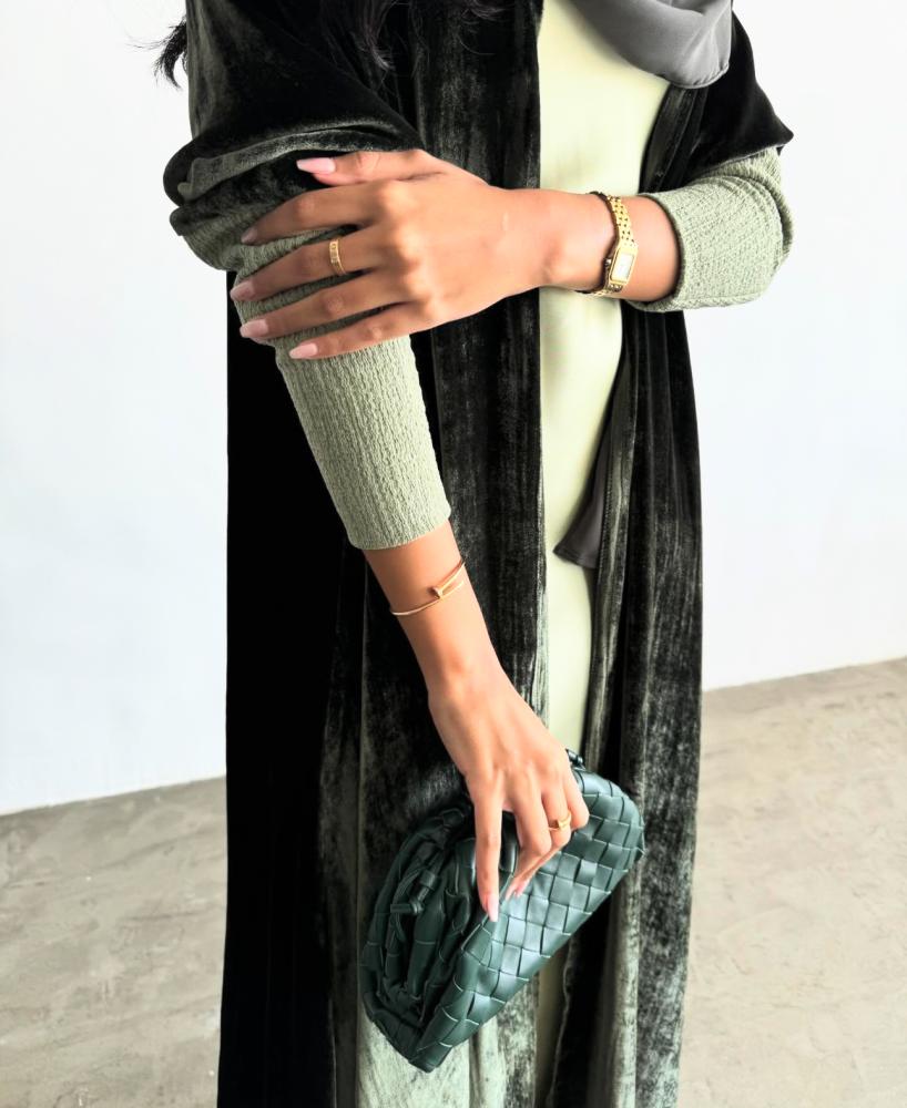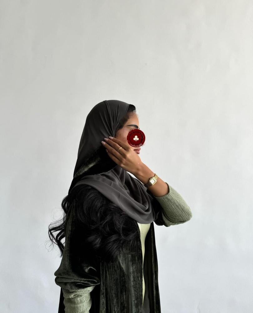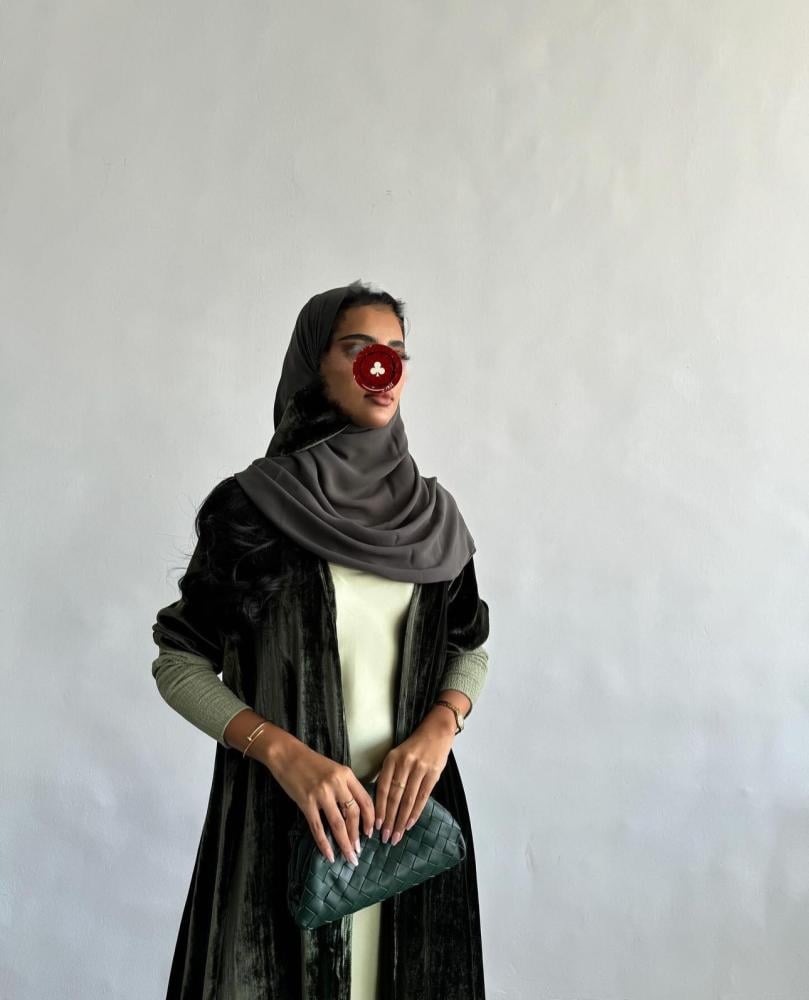عباية قماش مخمل حرير ، اكمام استرتش ، قصة كلوش ، طرحه طرف .